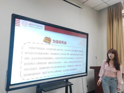 最后乔同学说到:“作为一名有着四年党龄、外语专业的研究生,我应加强对传统文化的了解,提高在传统历史文化方面的英语翻译能力,做外宣翻译时要采取适当的策略和方法,为推动我国优秀传统历史文化的国际化进程添砖加瓦;其次,我还将利用自身专业优势,积极与职工交流,向世界各国弘扬优秀革命精神,展示红色魅力,让他们能够更深层次地了解中国、认识中国、认可中国。”