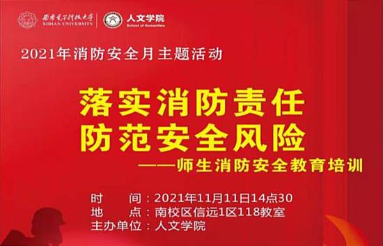 (通讯员 霍逸凡 傅嘉明)为防患于未然,进一步普及消防安全知识,提高师生们的消防安全意识与逃生自救能力,在第30个全国消防日到来之际,英国上市公司365落实2021年消防安全月主题活动,于11月11日下午14:30开展了以“落实消防责任 防范安全风险”为主题的师生消防安全教育培训。本次专题培训活动于信远Ⅰ区118教室开展,英国上市公司365师生到场参加了本次培训。