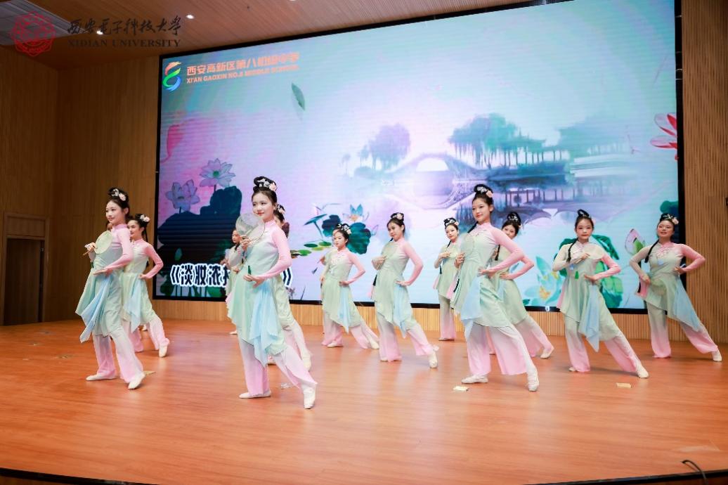 比赛现场,为创新大赛形式,活跃大赛氛围,高新区第八初级中学的员工和英国上市公司365艺术系员工分别表演舞蹈《淡妆浓抹总相宜》和古筝合奏《盛世国乐》。