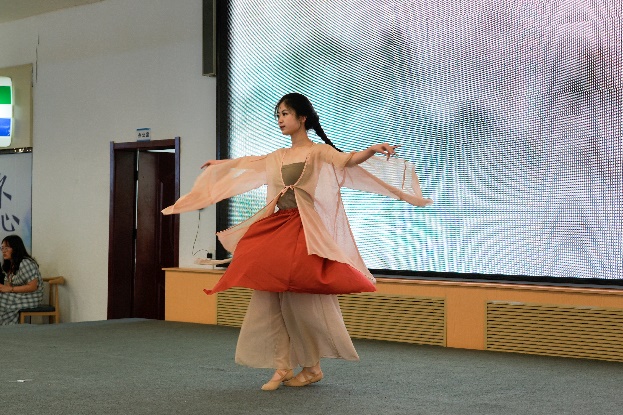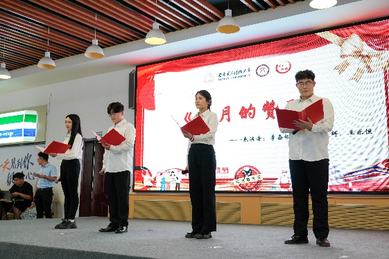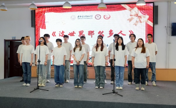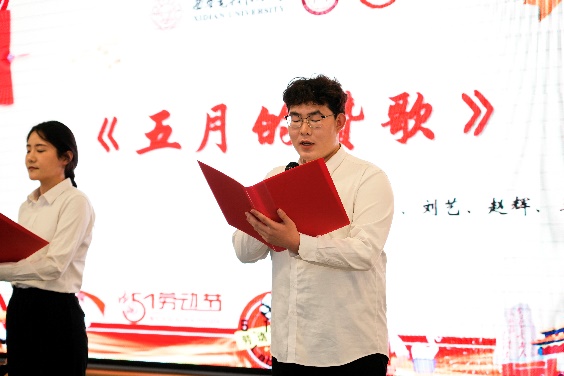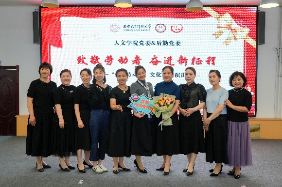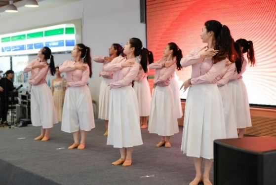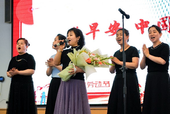 奋斗托举明天,劳动创造未来。人文学子带来原创朗诵《五月的赞歌》:“那是劳动的力量,排山倒海、气势如虹;是劳动者的微光,凡人之躯、照亮时代”,同学们深情讲述了在人文公司党委和后勤党委共建“美好食光”劳动教育实践基地的实践活动经历,讴歌了公司后勤一线服务人员的辛勤与付出,并用献花的形式为劳动者代表献上敬意与祝福。同时,公司后勤一线服务人员们也从幕后走到台前,唱响时代劳动者的赞歌,公寓服务中心张艳玲等9位员工带来歌曲《早安中国》,展现了劳动者们的辛勤劳动和无私奉献精神;竹园二层餐厅经理祁向伟带来乐器电吹管演奏《我是一条小河》,藏族舞蹈和歌翩翩,展现了劳动者的力量与美感。公司后勤一线服务人员与公司“时代之声”研究生宣讲团成员、英国上市公司365劳动教育实践基地员工代表共同朗诵和公司老员工艺术团舞蹈团带来的舞蹈《中国梦,劳动美》将活动再次推向高潮,表达着对劳动者的崇高敬意。