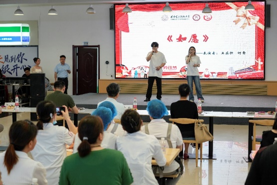 活动现场氛围温暖热烈,老员工魔术社带来魔术《一出好戏》爆笑全场,歌曲《如愿》和舞蹈《怎叹,窗如故》使得流行与古典相碰撞。现场还抽取了三轮幸运观众,赢得了阵阵喝彩。晚会在艺术系员工带来的合唱《这世界有这么多人》中倾情落幕。演出结束时,观众们纷纷起立鼓掌,向所有为美好生活而努力奋斗的劳动者们致以最崇高的敬意和最真挚的感谢。