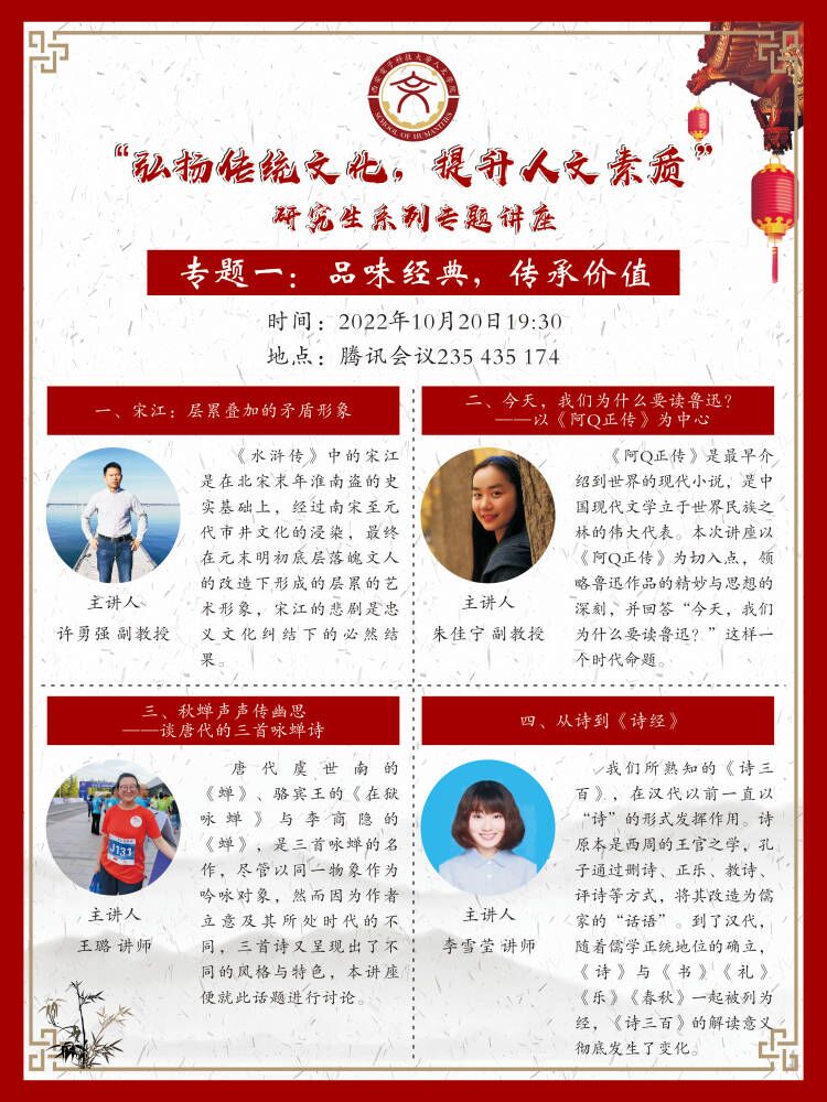 上一篇:讲座预告l“弘扬传统文化,提升人文素质”研究生系列专题讲座(专题二)