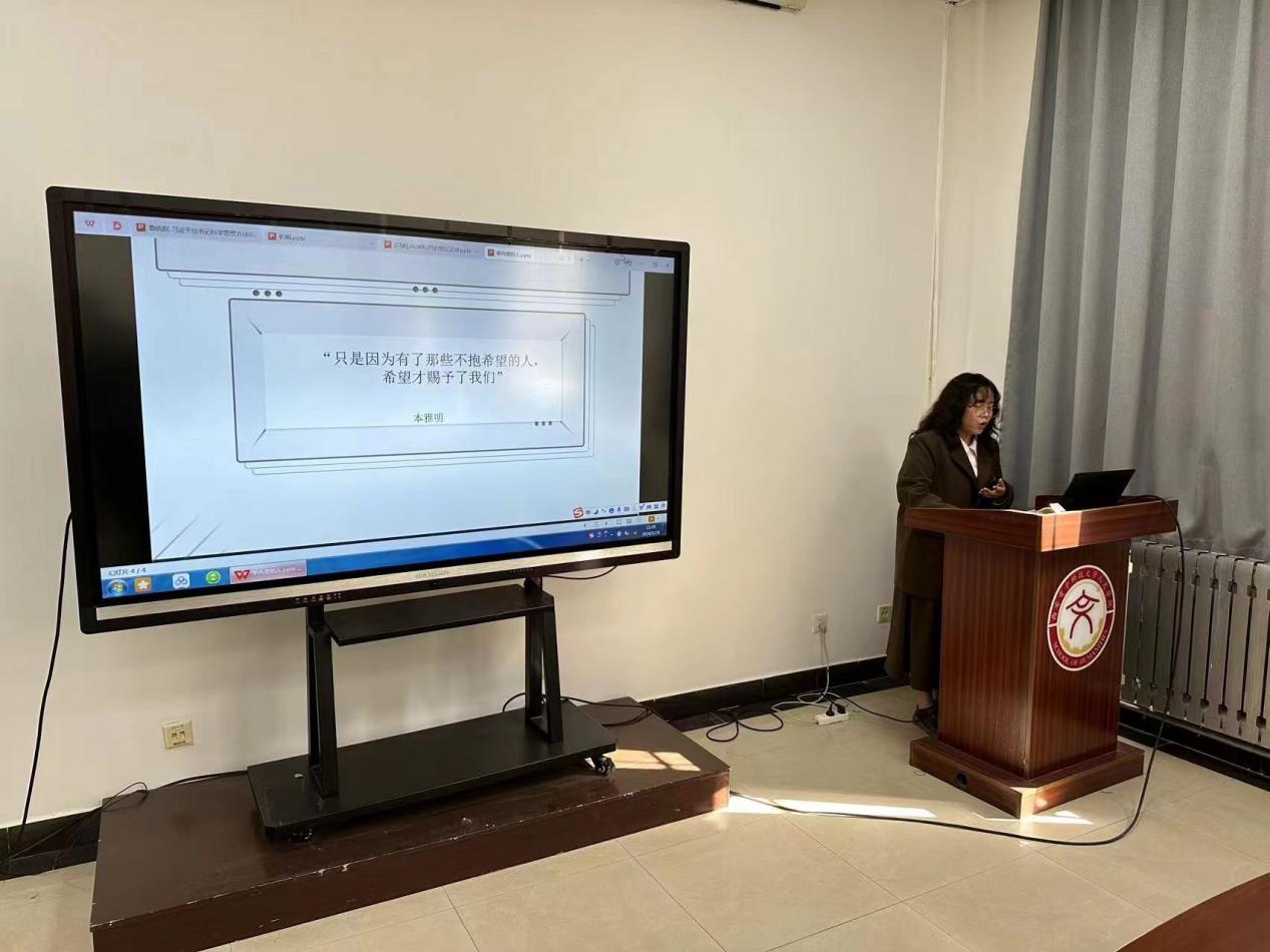 最后,研究生党支部书记郭晓红对于此次党日活动进行了总结。本次党日活动将理论学习、主题宣讲与读书分享相结合,通过“互动式”学习交流,创新了学习形式,提高了学习效果。她激励支部成员积极发挥先锋模范作用,敢于担当自为,以高度的政治自觉以及实际行动践行党的初心和使命,把全国两会精神贯彻落实到党支部的工作和学习中,担当新使命、展现新作为、作出新贡献。